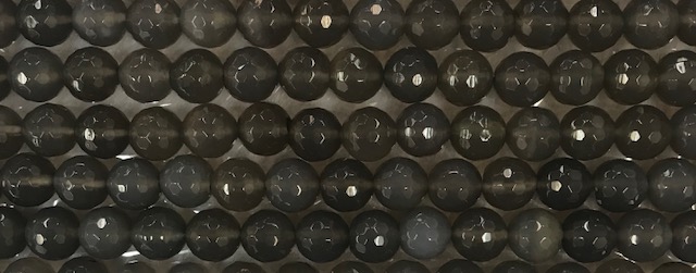 Stone: Grey quartz, length: Appx. 16", Size: 8mm, shape: faceted & round.